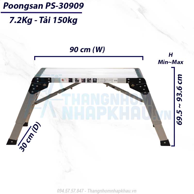 Thông số kỹ thuật thang nhôm bàn Poongsan PS-30909