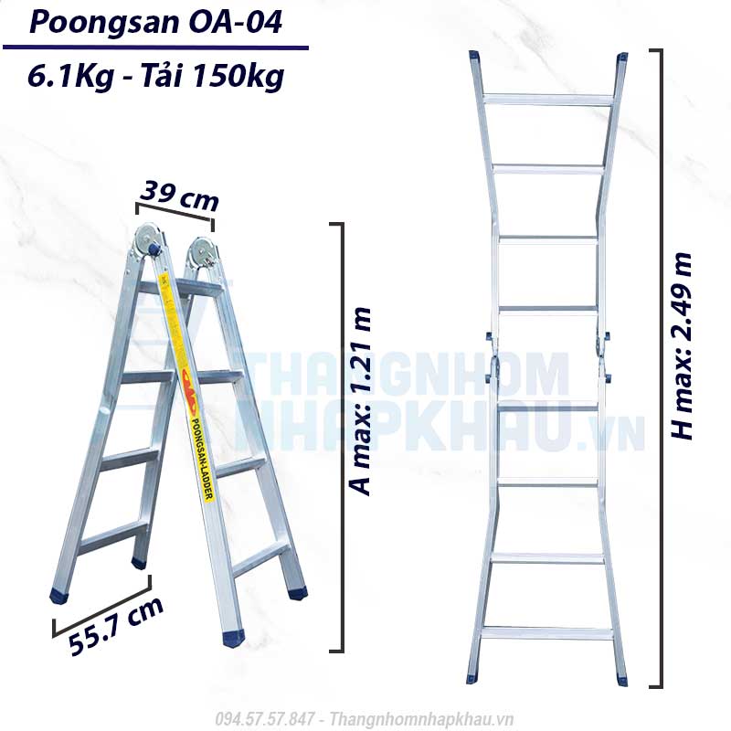 01. Thông số kỹ thuật thang nhôm chữ A Poongsan Hàn Quốc OA-04