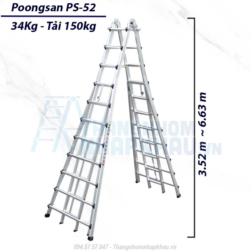 – Thang nhôm gấp đa năng Poongsan PS52 (Amax 6m63) luôn là lựa chọn được ưu tiên, không thể thiếu trong nhiều lĩnh vực.