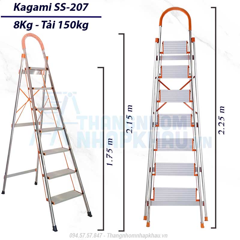 05. Đại lý thang nhôm ghế tay vịn 1m75 Kagami Nhật Bản SS-207 chữ A 7 bậc giá tốt