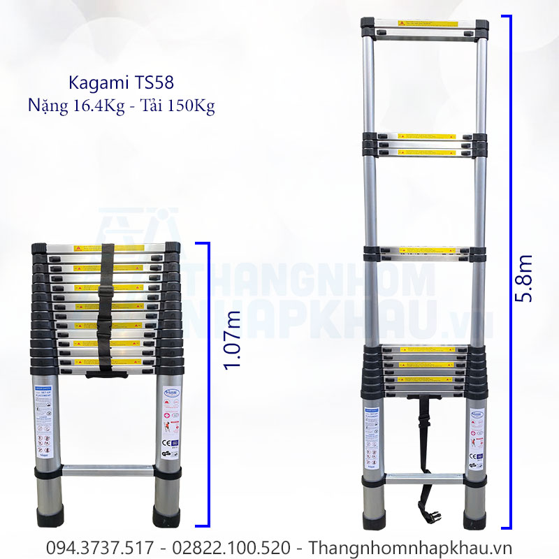 Đại lý phân phối thang nhôm rút đơn Kagami TS58 – cam kết chính hãng
