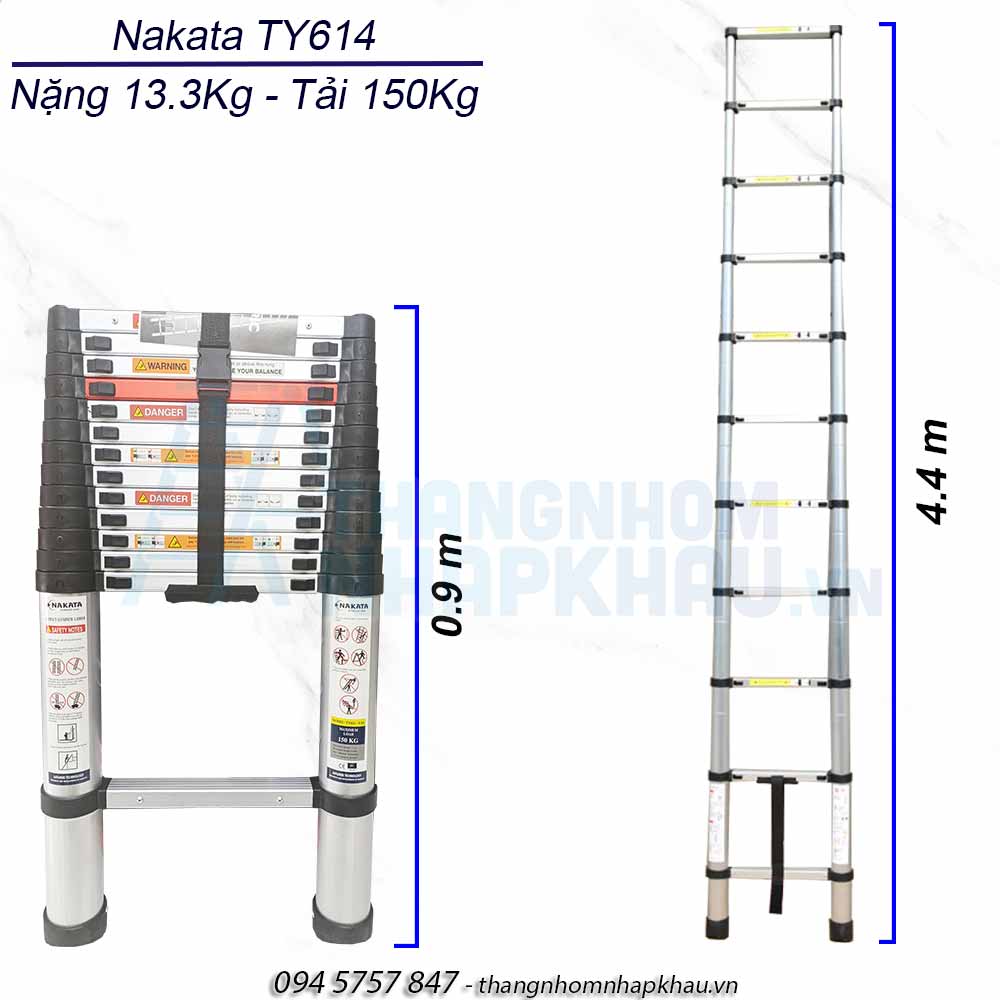 Liên hệ thang nhôm rút gọn I 4m4 Nakata TY-614 chính hãng