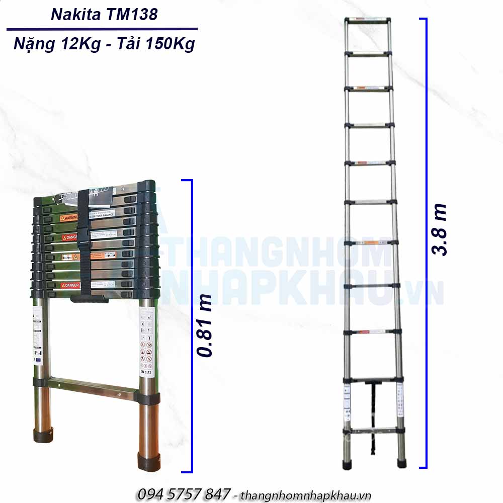 Thông số kỹ thuật thang rút đơn Inox Nakita TM138 ( 3m8)
